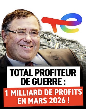 Pendant que TotalEnergies engrange des profits records, 20 milliards € de bénéfice en 2023. Et 1 milliard € de profit en mars 2026